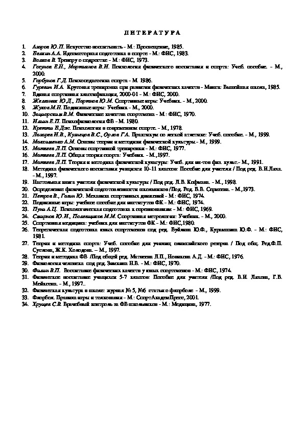 28. Теория и методика ФВ /Под общей ред. Матвеева Л.П., Новикова А.Д. М.: ФИС, 1976.