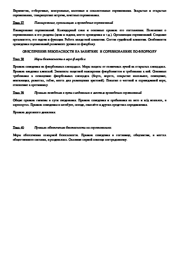 ОБЕСПЕЧЕНИЕ БЕЗОПАСНОСТИ НА ЗАНЯТИЯХ И СОРЕВНОВАНИЯХ ПО ФЛОРБОЛУ