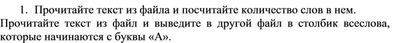 5. Прочитайте текст из файл и выведите в другой файл в столбик все слова, которые начинаются с буквы «А».