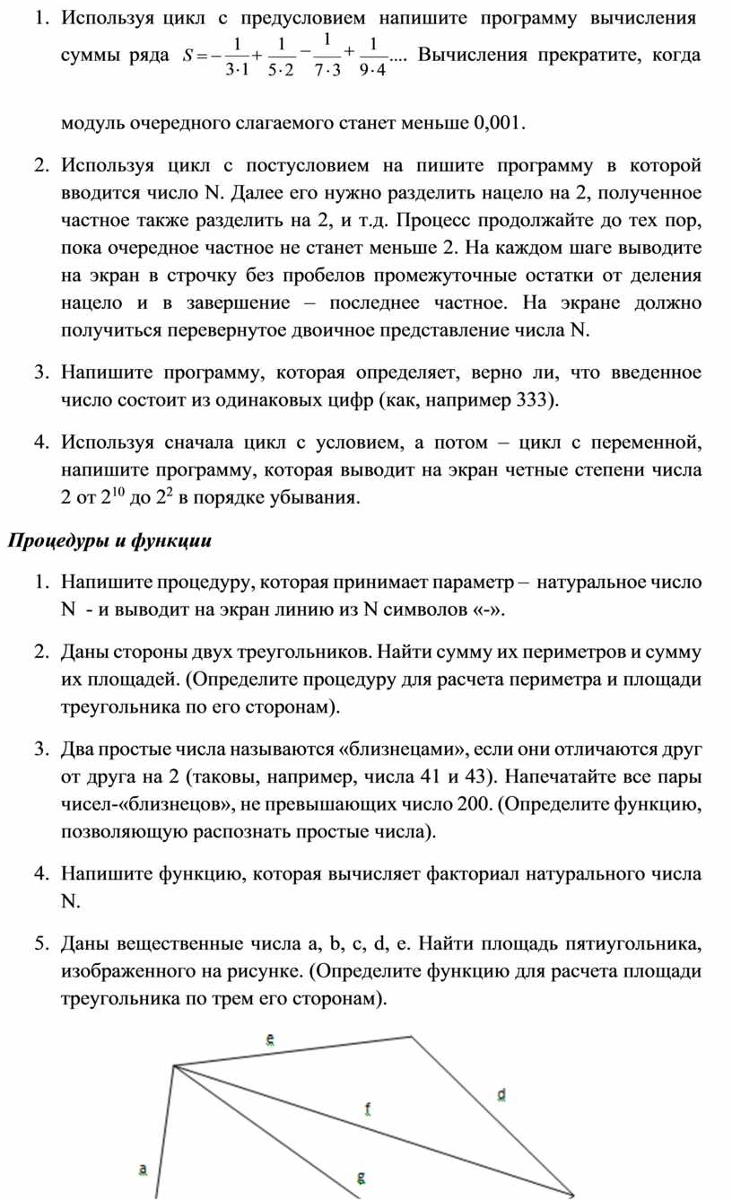 рисунке. (Определите функцию для расчета площади треугольника по трем его сторонам).
