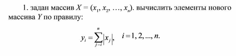 7. задан массив Х = (х1, х2, …, хn). вычислить элементы нового массива Y по правилу: