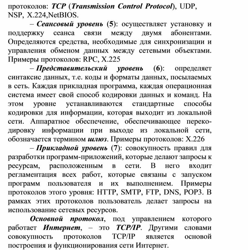 Основной протокол, под управлением которого работает Интернет, – это TCP/IP. Другими словами совокупность протоколов ТСР/IP является основой построения и функционирования сети Интернет.
