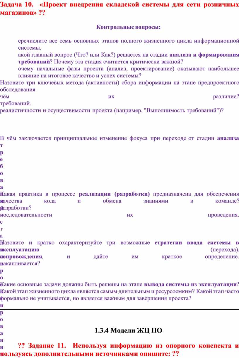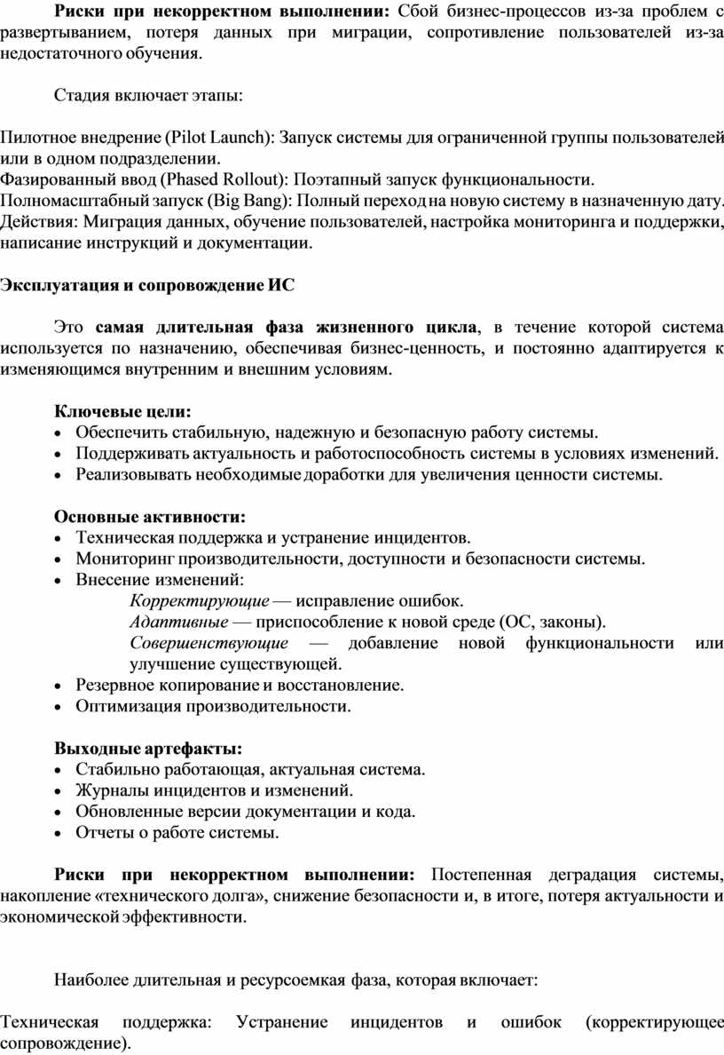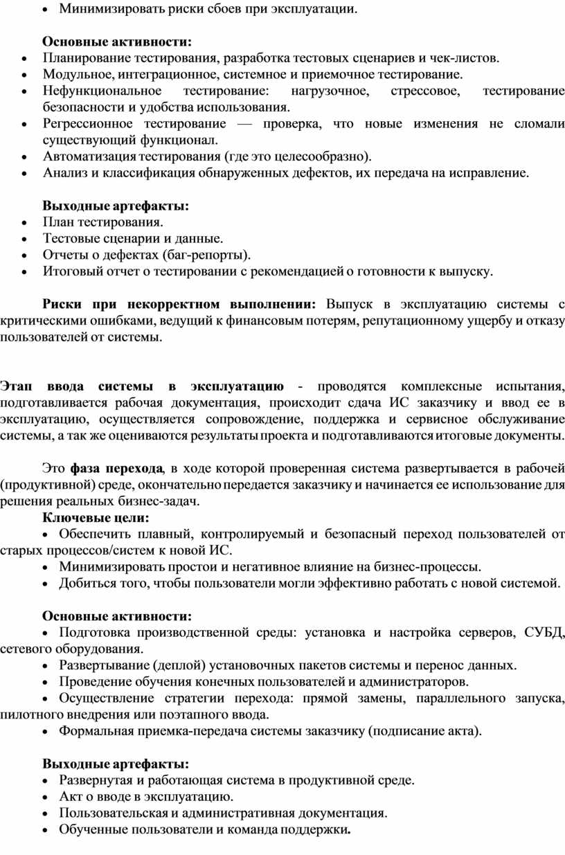 Задание: Определите, на каком этапе жизненного цикла ПО (планирование, разработка, тестирование, сопровождение) создаётся или актуализируется указанный документ.
