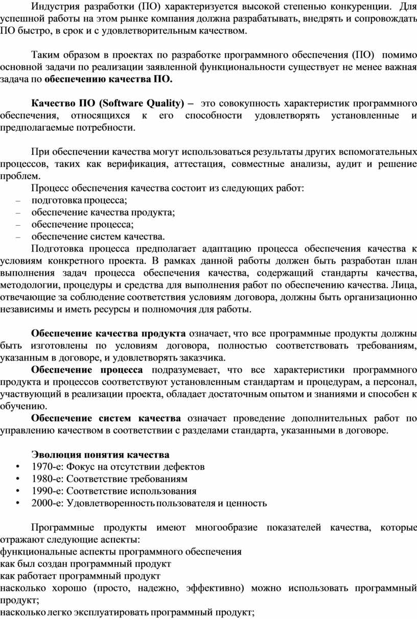 В связи с этим для обеспечения её качества разработан ряд международных и национальных стандартов (таких как ГОСТ, ISO/IEC, IEEE).