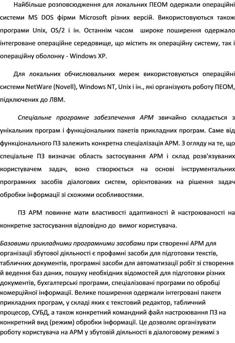 Найбільше розповсюдження для локальних ПЕОМ одержали операційні системи MS DOS фірми Mіcrosoft різних версій. Використовуються також програми Unіx, OS/2 і ін. Останнім часом широке поширення одержало інтегроване операційне середовище, що містить як операційну систему, так і операційну оболонку - Wіndows ХР.