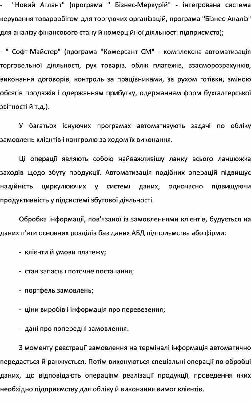 У багатьох існуючих програмах автоматизують задачі по обліку замовлень клієнтів і контролю за ходом їх виконання.