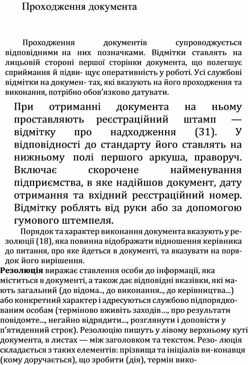 Порядок та характер виконання документа вказують у ре- золюції (18), яка повинна відображати відношення керівника до питання, про яке йдеться в документі, та вказувати на поря- док його вирішення.
