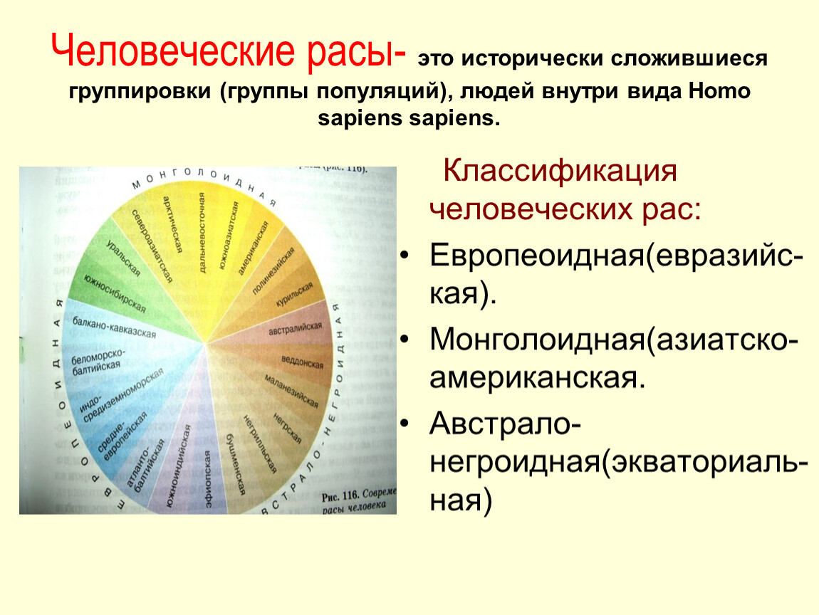 Человеческие расы- это исторически сложившиеся группировки (группы популяций), людей внутри вида Homo sapiens sapiens.