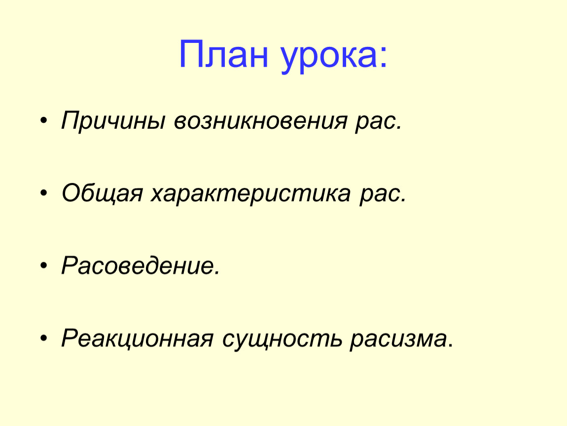 Расизм- антинаучное учение о расах , основой которого является утверждение о физической и психической неполноценности низших и превосходства высших рас