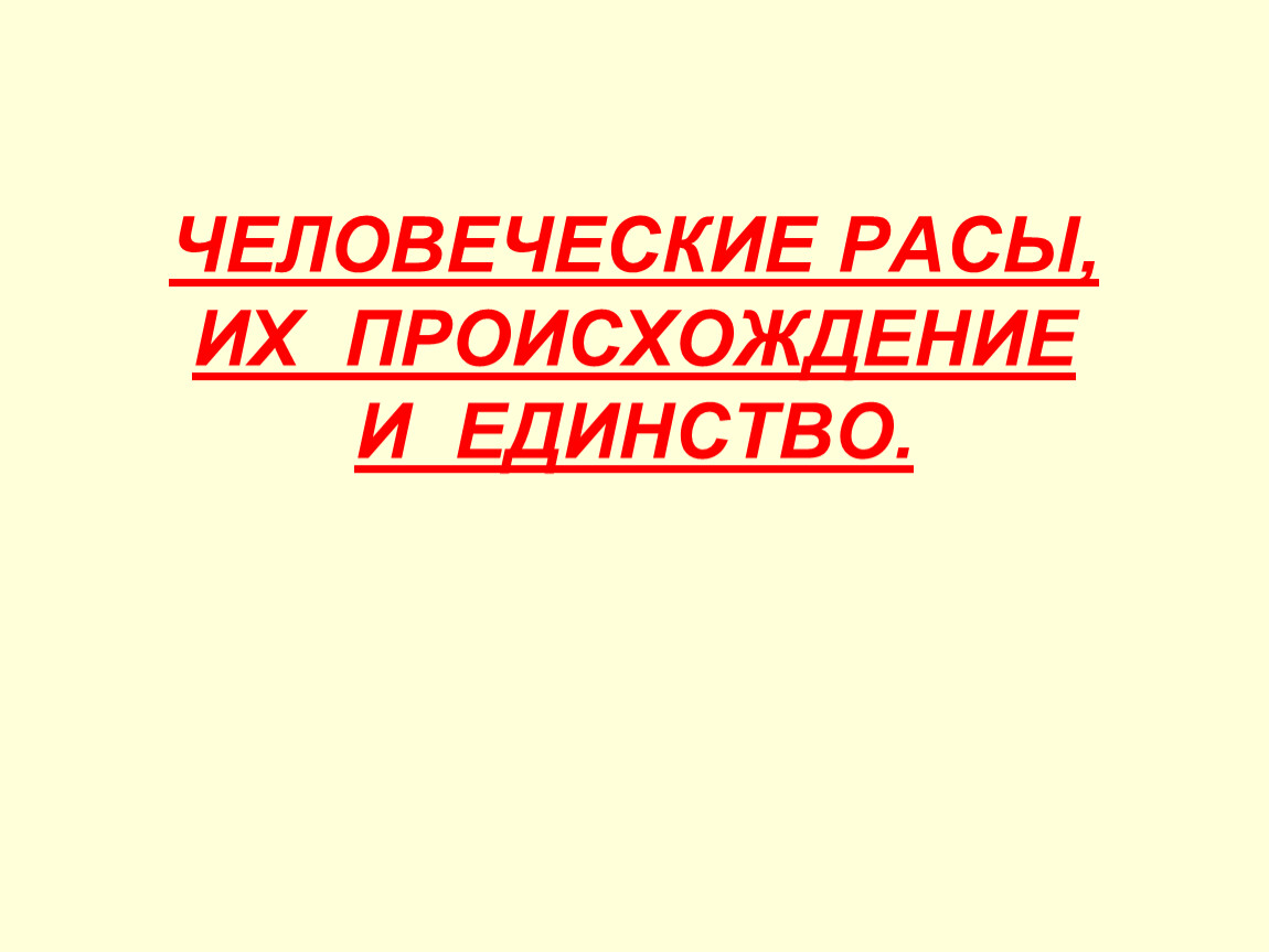 ЧЕЛОВЕЧЕСКИЕ РАСЫ,ИХ ПРОИСХОЖДЕНИЕ И ЕДИНСТВО.
