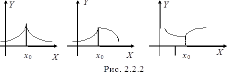 Производная функции f(x) не существует в тех точках, в которых функция не является непрерывной. В то же время функция может быть непрерывной в точке x0, но не иметь в этой точке производной. Такую точку назовём угловой точкой графика функции или точкой излома. Графические примеры приведены на рисунке 2.2.2.