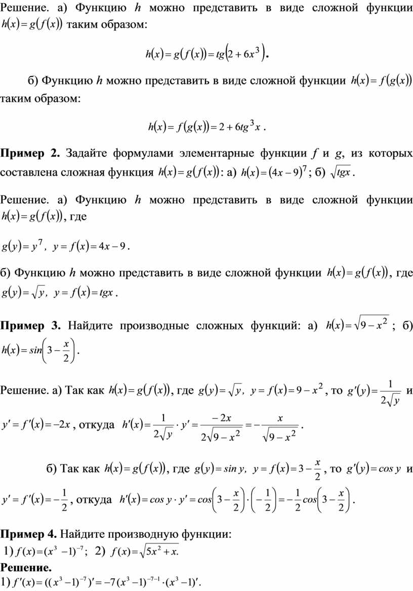 Решение. а) Функцию h можно представить в виде сложной