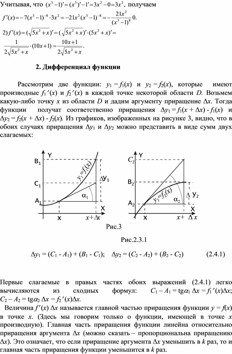 приращения функции y = f(x) в точке x. (Здесь мы