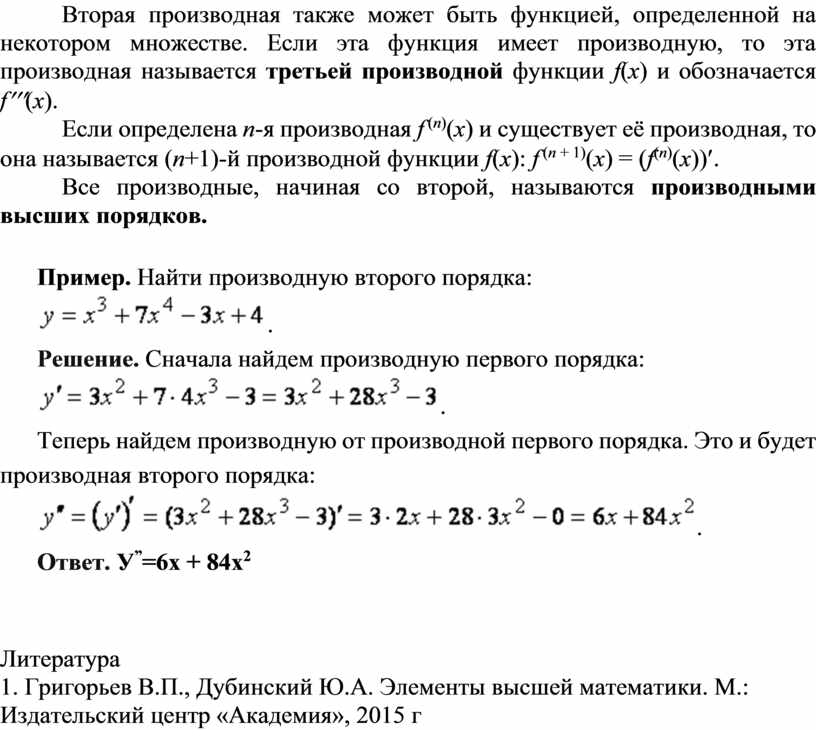 Все производные, начиная со второй, называются производными высших порядков.