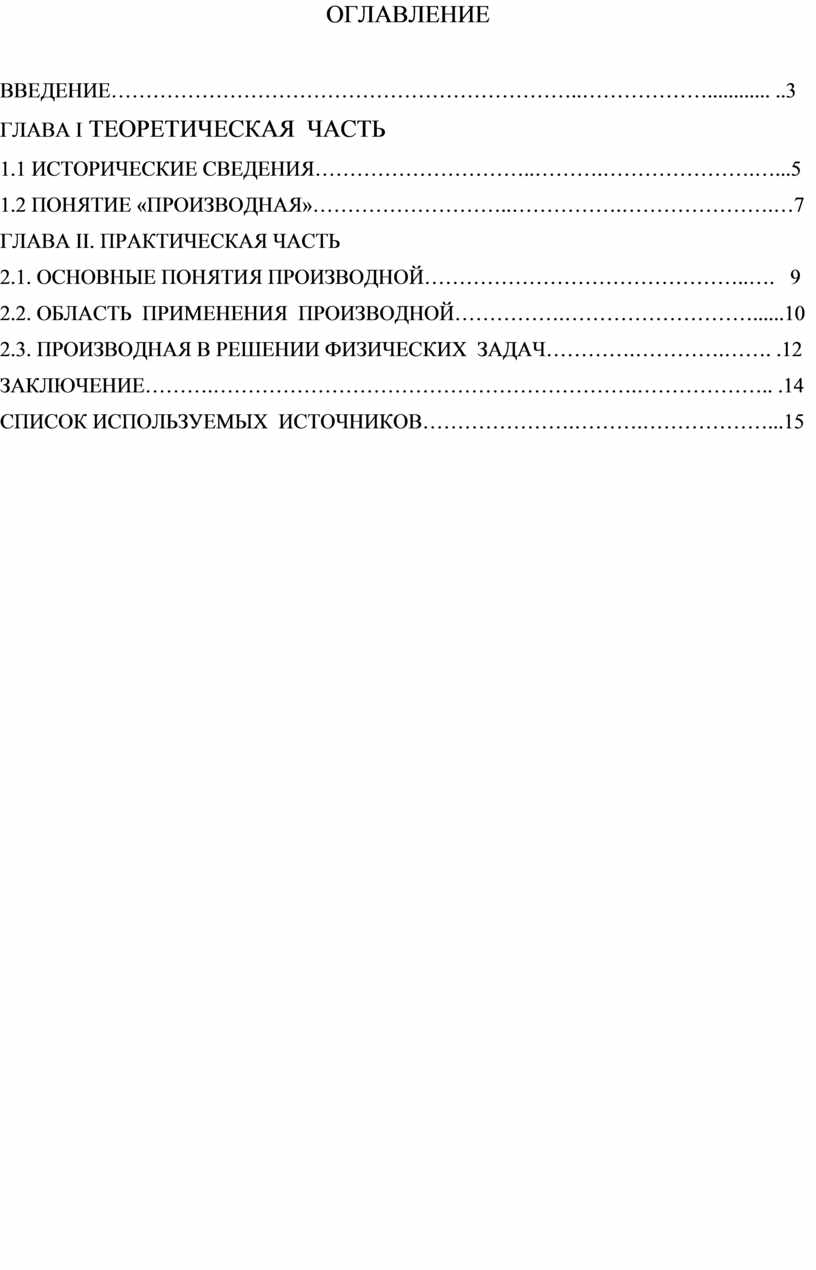 2.2. ОБЛАСТЬ ПРИМЕНЕНИЯ ПРОИЗВОДНОЙ…………….………………………......10