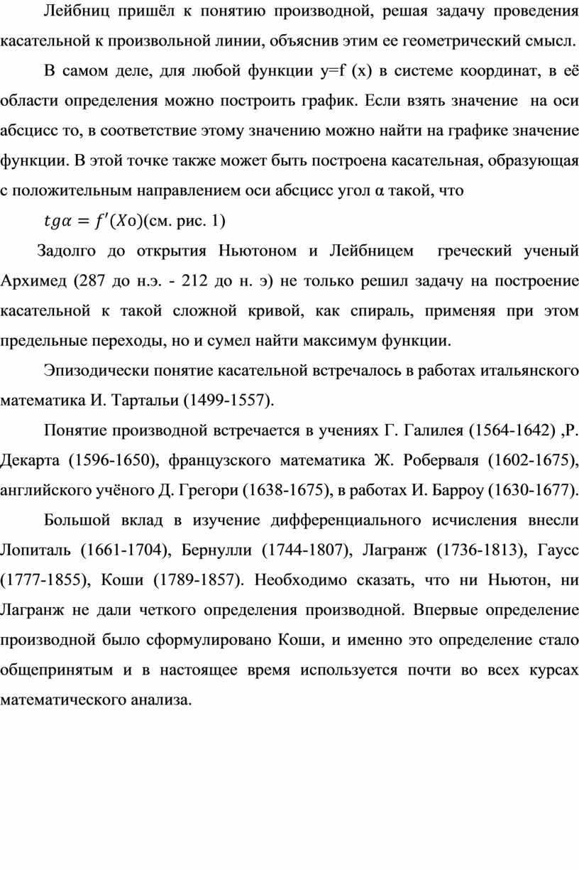 Лейбниц пришёл к понятию производной, решая задачу проведения касательной к произвольной линии, объяснив этим ее геометрический смысл.