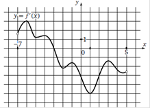 На рисунке изображен график производной функции f(x), определенной на интервале (−7;5). Найдите точку экстремума функции f(x), принадлежащую отрезку [−6;4].