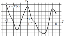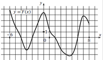 На рисунке изображен график y =F(x) одной из первообразных некоторой функции f, определенной на интервале (−6;8). 1. Определите количество целых чисел xi, для которых f (xi) положительно.