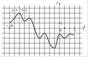 На рисунке изображен график производной функции f(x), определенной на интервале (−10; 3). В какой точке отрезка [−4;−1] f(x) принимает наибольшее значение?