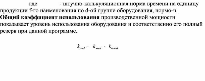 n общим коэффициентами использования оборудования.