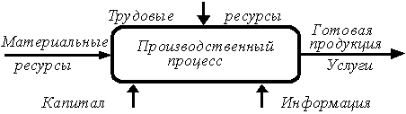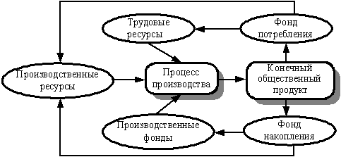 Общая системная модель производственного процесса показана на рис.2. Место производственного процесса в общей схеме воспроизводства отражено на рис.3.