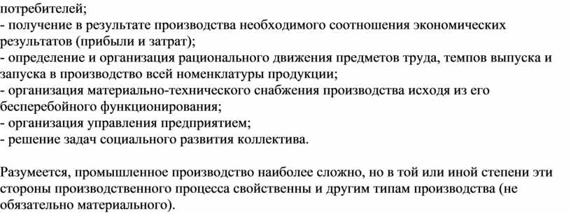 Разумеется, промышленное производство наиболее сложно, но в той или иной степени эти стороны производственного процесса свойственны и другим типам производства (не обязательно материального).