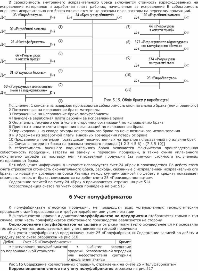 Корреспонденция счетов по учету брака приведена на рис 515