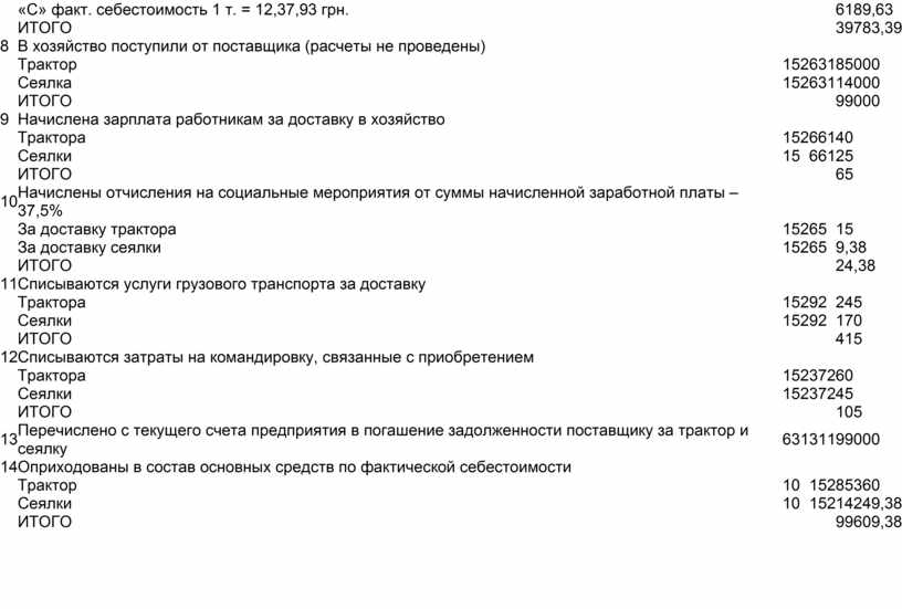 Перечислено с текущего счета предприятия в погашение задолженности поставщику за трактор и сеялку |