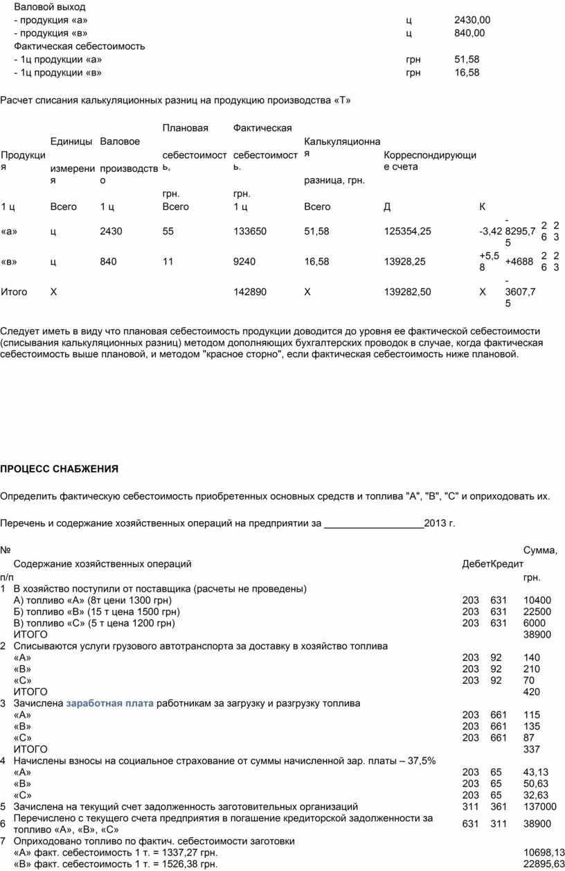 Произвести расчет себестоимости продукции производства «Т» (основной продукции - «а», сопутствующей-«в» и побочной-«д»). После этого списать калькуляционные разницы в соответствующей таблице.