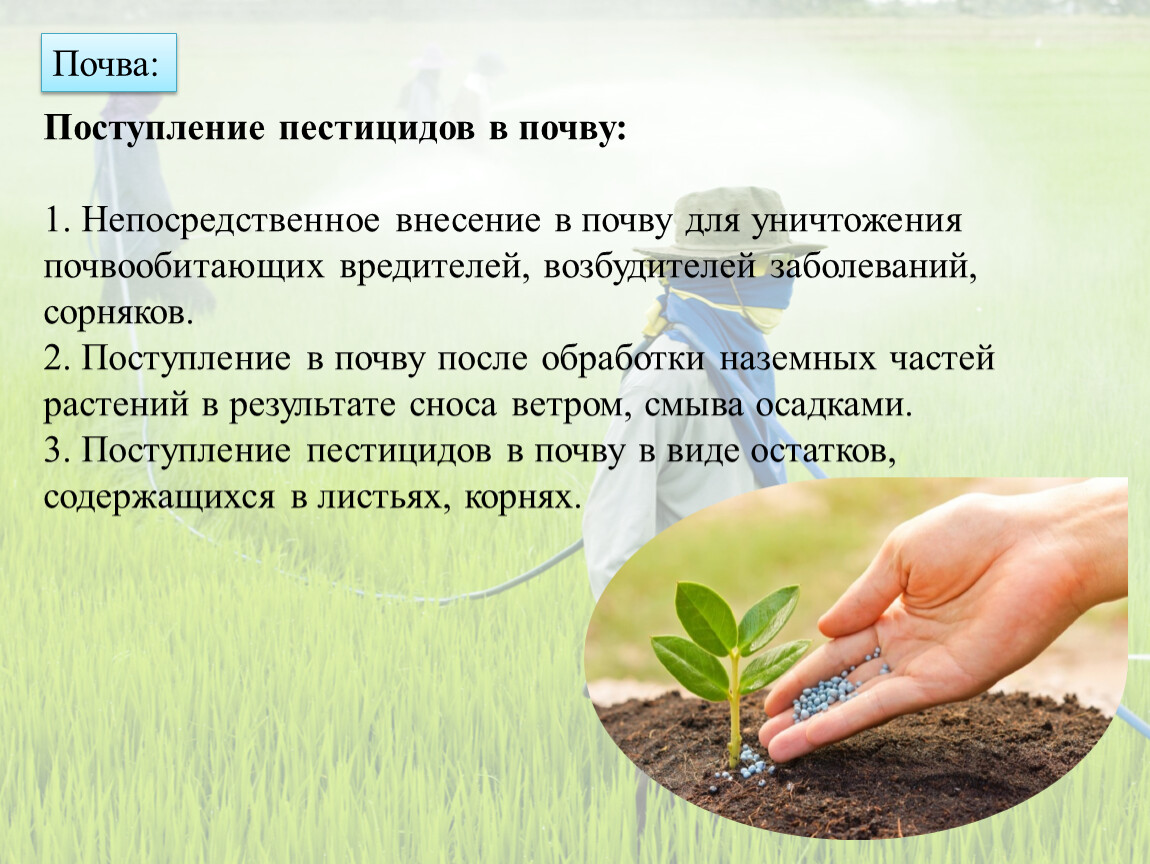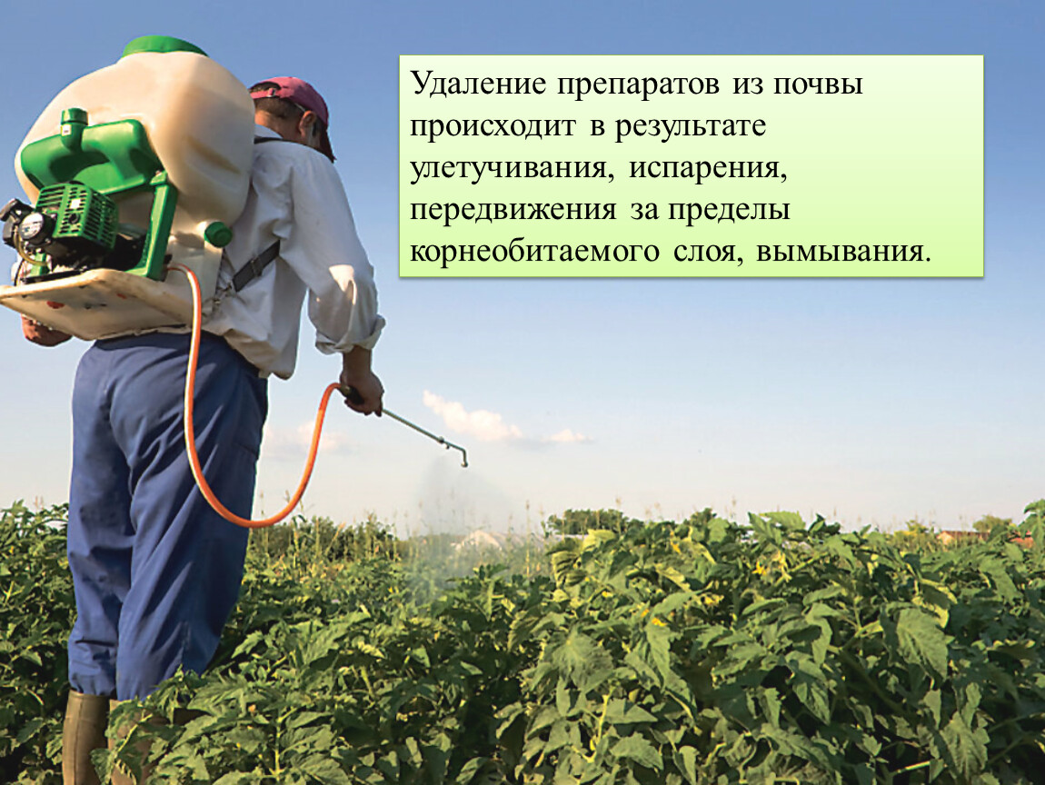 Удаление препаратов из почвы происходит в результате улетучивания, испарения, передвижения за пределы корнеобитаемого слоя, вымывания.