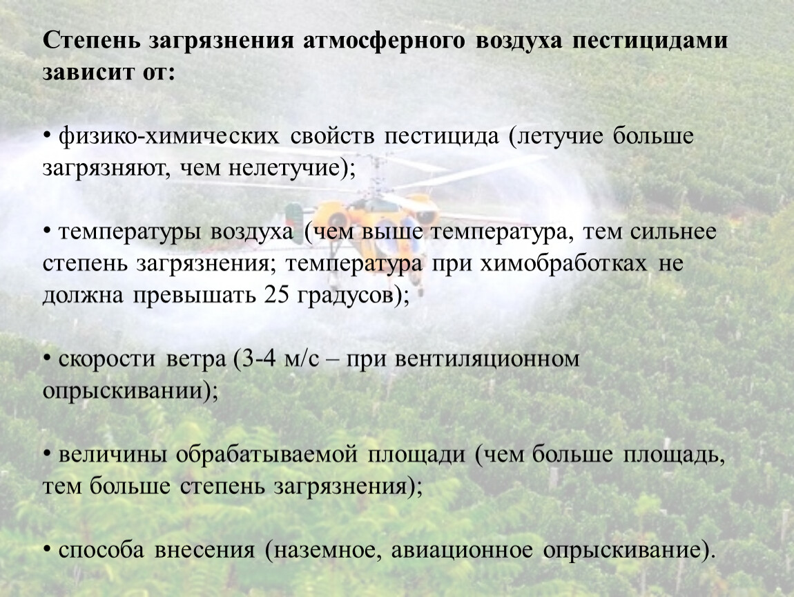 Степень загрязнения атмосферного воздуха пестицидами зависит от: