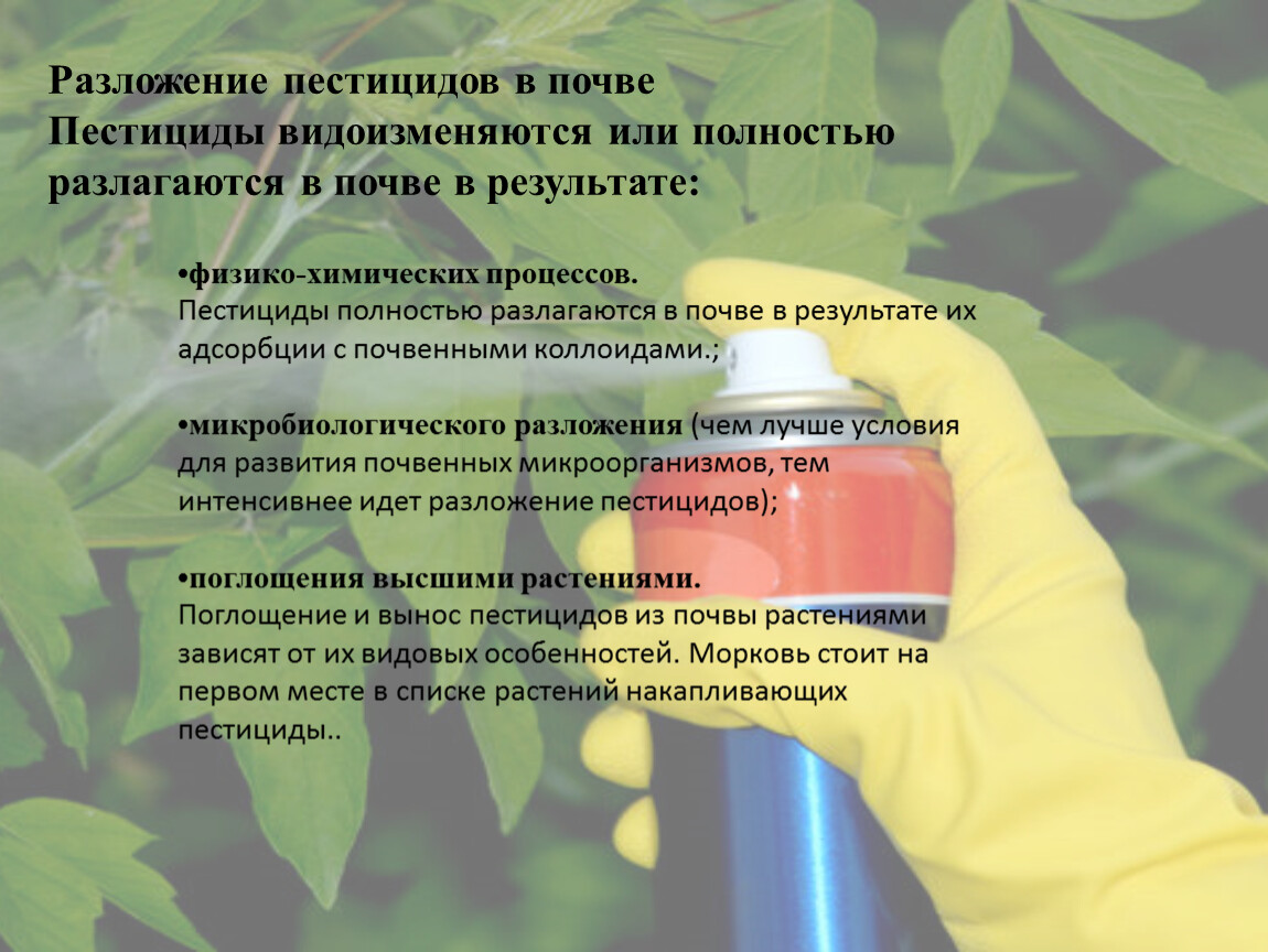 Пестициды видоизменяются или полностью разлагаются в почве в результате: