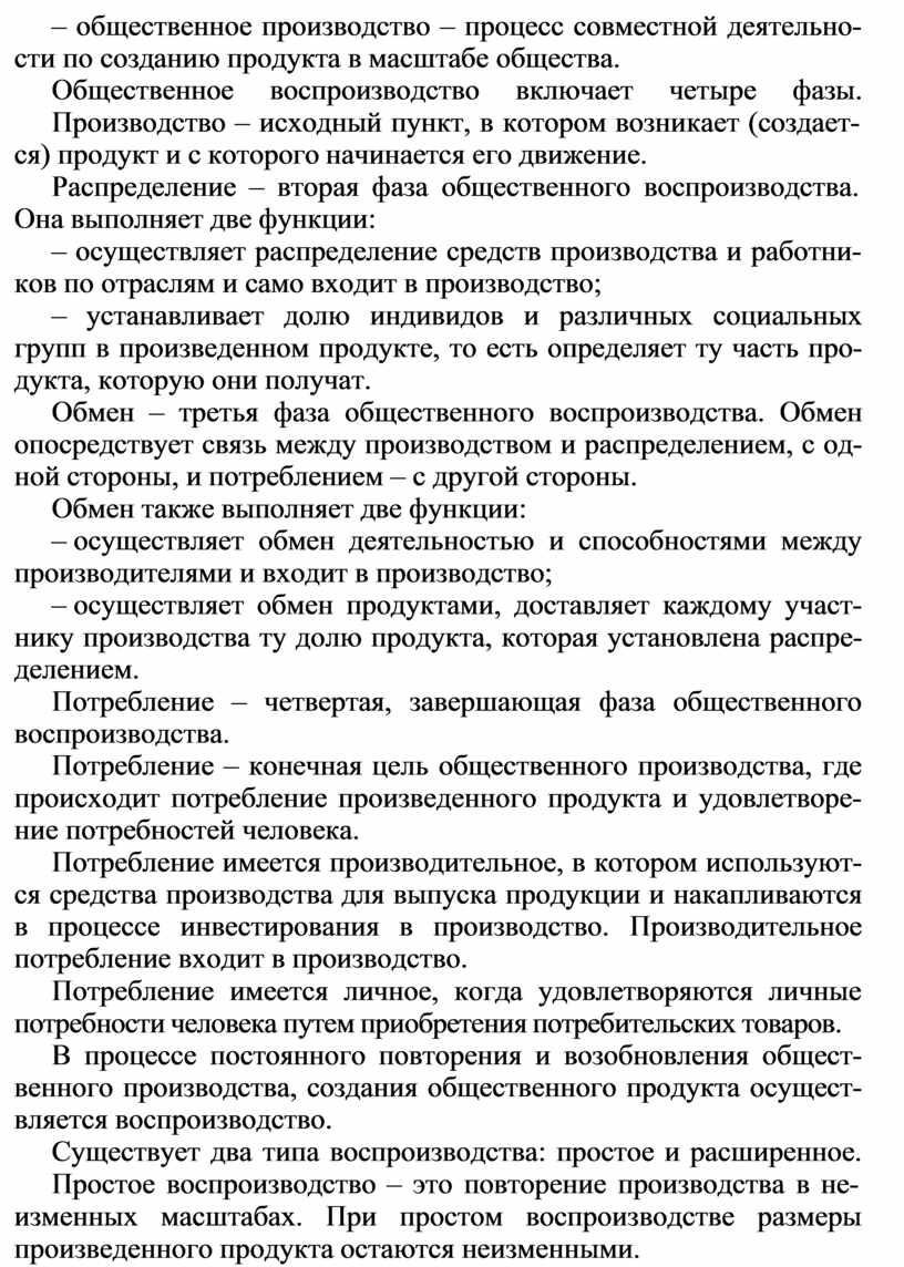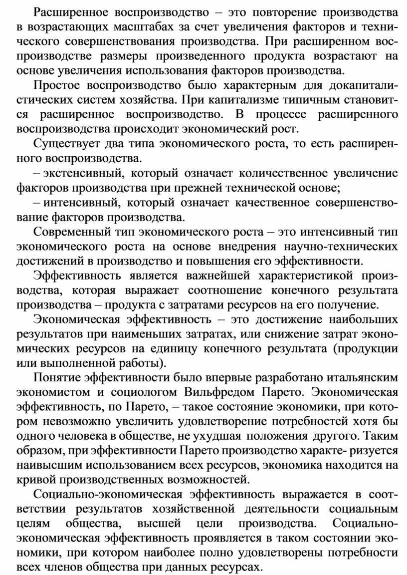 Расширенное воспроизводство – это повторение производства в возрастающих масштабах за счет увеличения факторов и техни- ческого совершенствования производства. При расширенном вос- производстве размеры произведенного продукта возрастают на основе увеличения использования факторов производства.