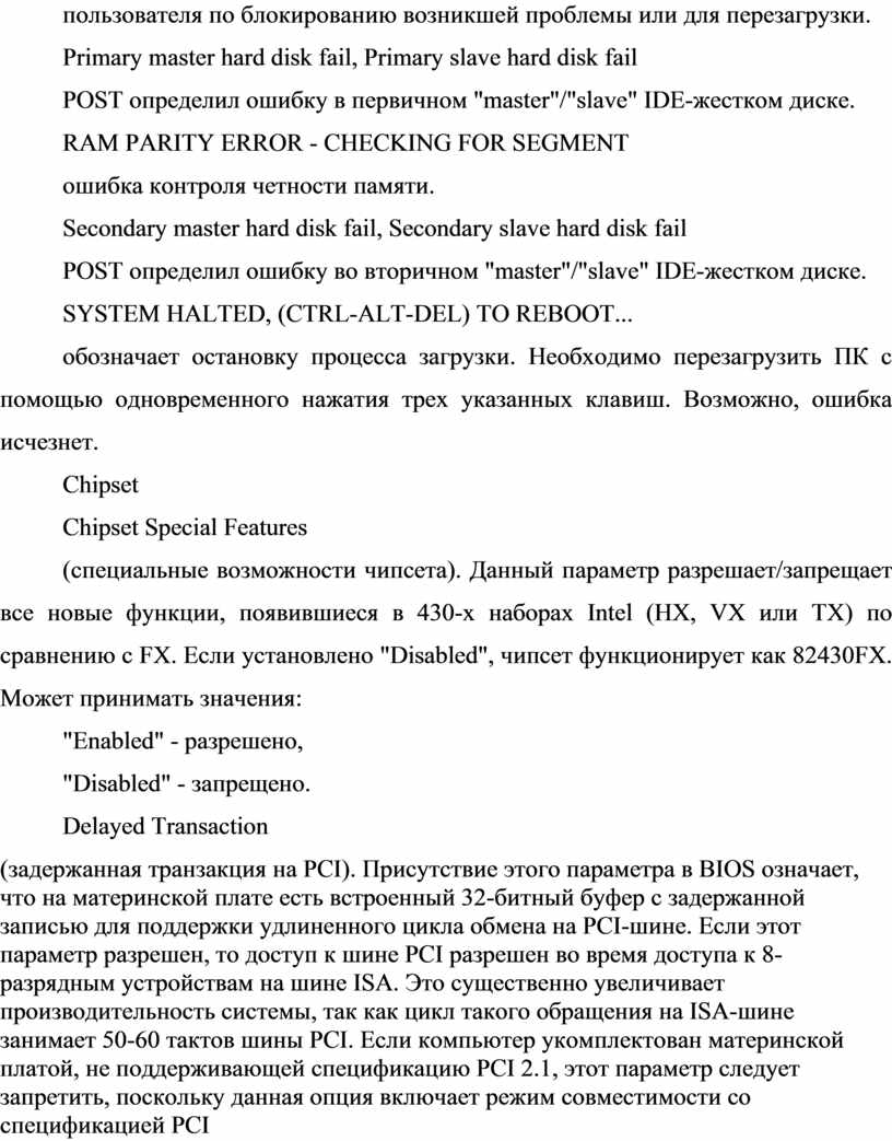 (специальные возможности чипсета). Данный параметр разрешает/запрещает все новые функции, появившиеся в 430-х наборах Intel (HX, VX или TX) по сравнению с FX. Если установлено "Disabled", чипсет функционирует как 82430FX. Может принимать значения:
