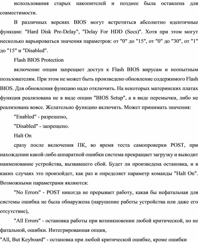 сразу после включения ПК, во время теста самопроверки POST, при нахождении какой-либо аппаратной ошибки система прекращает загрузку и выводит наименование устройства, вызвавшего сбой. Будет ли произведена остановка, и в каких случаях это произойдет, как раз и определяет параметр команды "Halt On". Возможными параметрами являются: