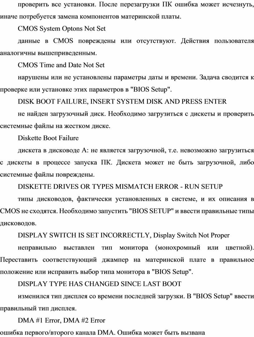 ошибка контроллера DMA. Возможна замена материнской платы.
