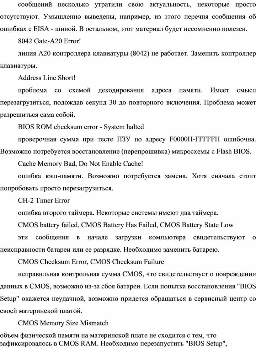 причиной такого сообщения могут быть неконтакт (обрыв) кабеля клавиатуры, заедание какой-либо наиболее часто используемой клавиши. Но прежде всего необходимо проверить установки опций "Typematic Rate" и "Typematic Delay", так как может иметь место несовместимость установок клавиатуры в "BIOS Setup".