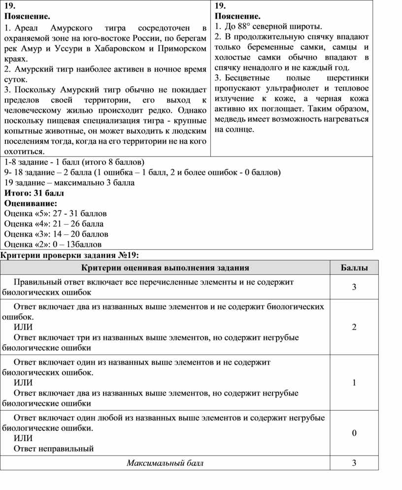 1-8 задание - 1 балл (итого 8 баллов) 9- 18 задание – 2 балла (1 ошибка – 1 балл, 2 и более ошибок - 0 баллов) 19 задание – максимально 3 балла Итого: 31 балл Оценивание: Оценка «5»: 27 - 31 баллов Оценка «4»: 21 – 26 балла Оценка «3»: 14 – 20 баллов Оценка «2»: 0 – 13баллов |