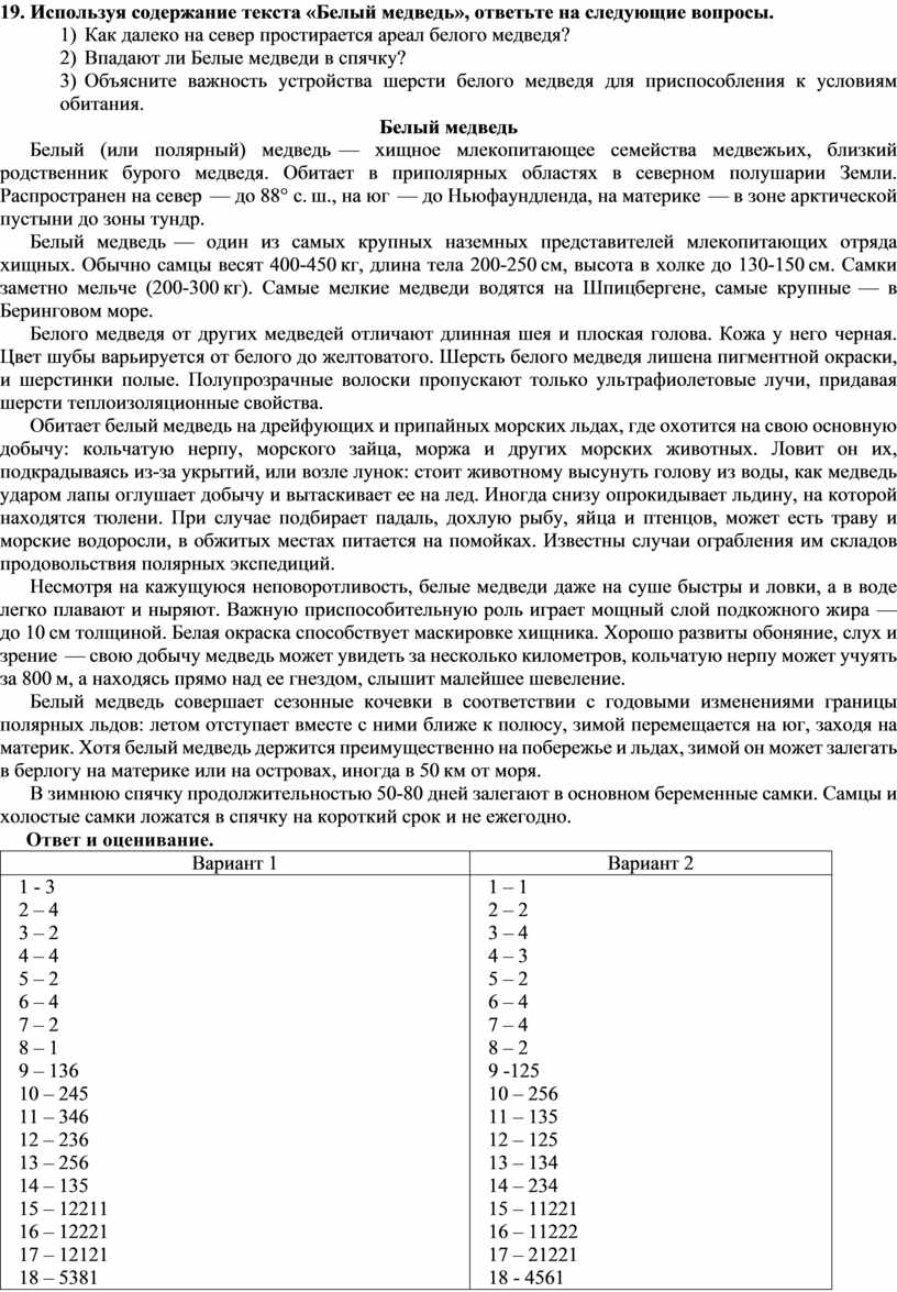 19. Используя содержание текста «Белый медведь», ответьте на следующие вопросы.