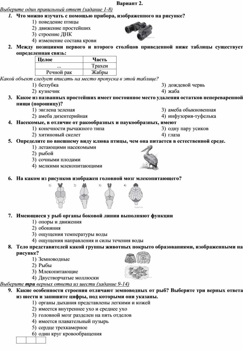 14. Для каких животных характерно легочное дыхание? Выберите три верных ответа и запишите в таблицу цифры, под которыми они указаны.