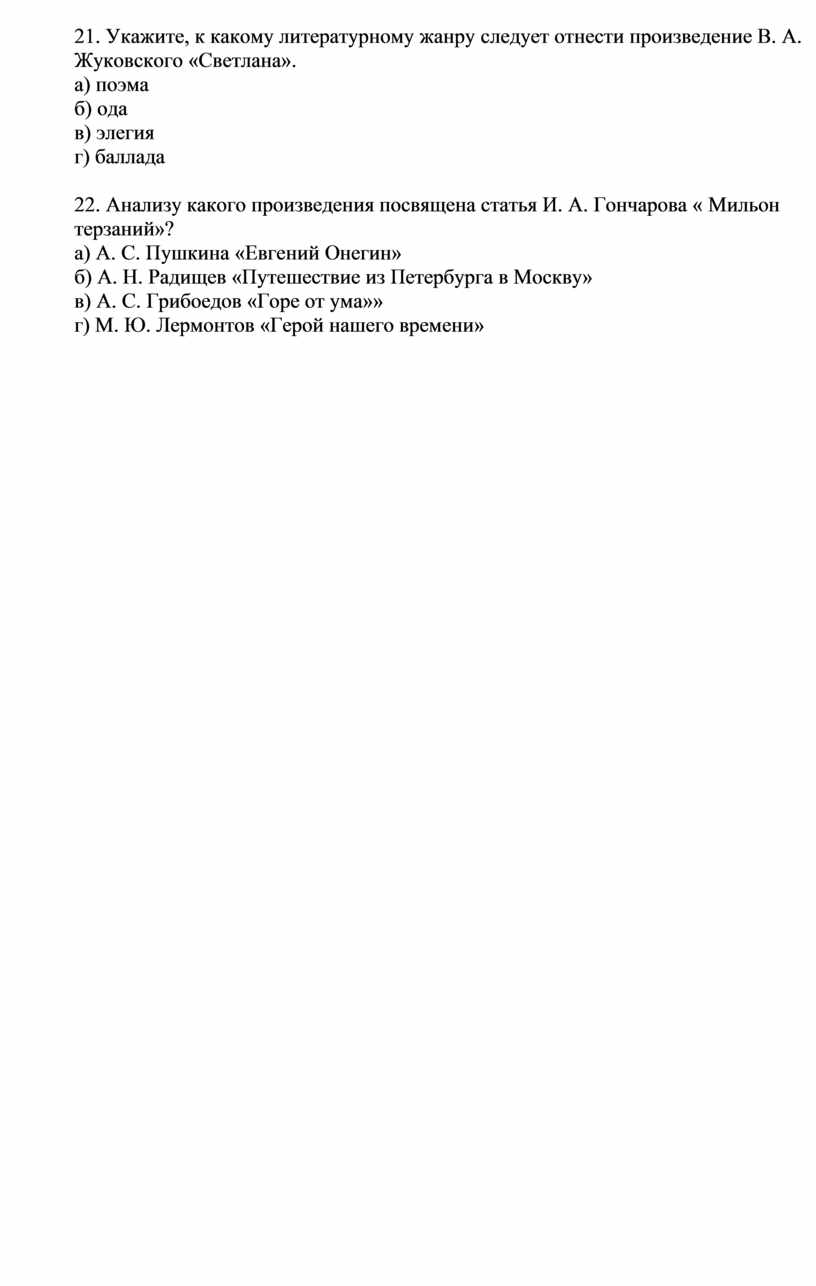 21. Укажите, к какому литературному жанру следует отнести произведение В. А. Жуковского «Светлана».