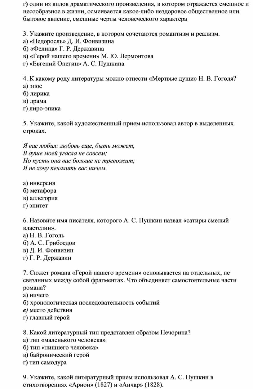9. Определите жанр «Мертвых душ» Н. В. Гоголя.
