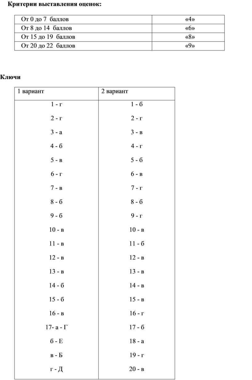 1 - г 2 - г 3 - а 4 - б 5 - в 6 - г 7 - в 8 - б 9 - б 10 - в 11 - в 12 - в 13 - в 14 - б 15 - б 16 - в 17- а - Г б - Е в - Б г - Д д - В е - А 18 - в 19 - в 20 - б 21 - в 22 - б