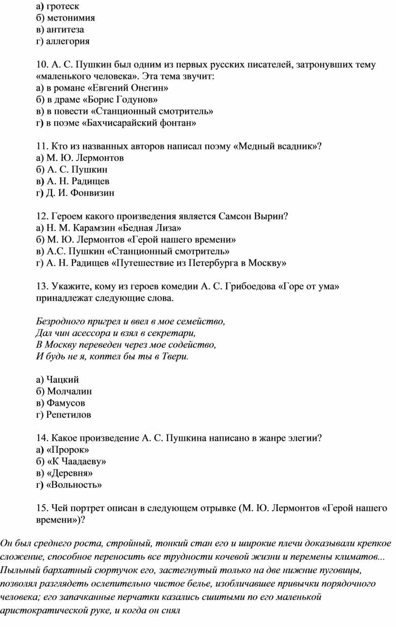 15. Чей портрет описан в следующем отрывке (М. Ю. Лермонтов «Герой нашего времени»)?