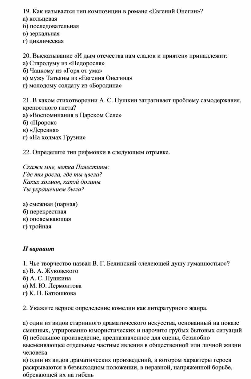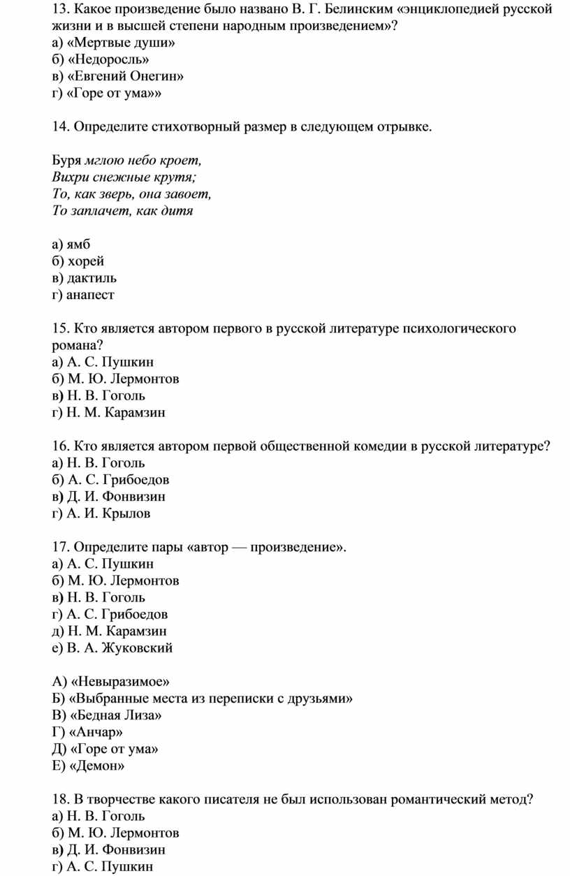 13. Какое произведение было названо В. Г. Белинским «энциклопедией русской жизни и в высшей степени народным произведением»?