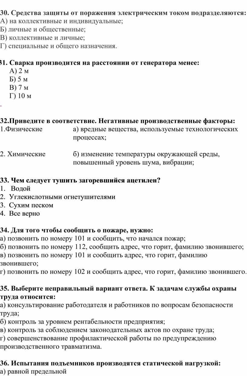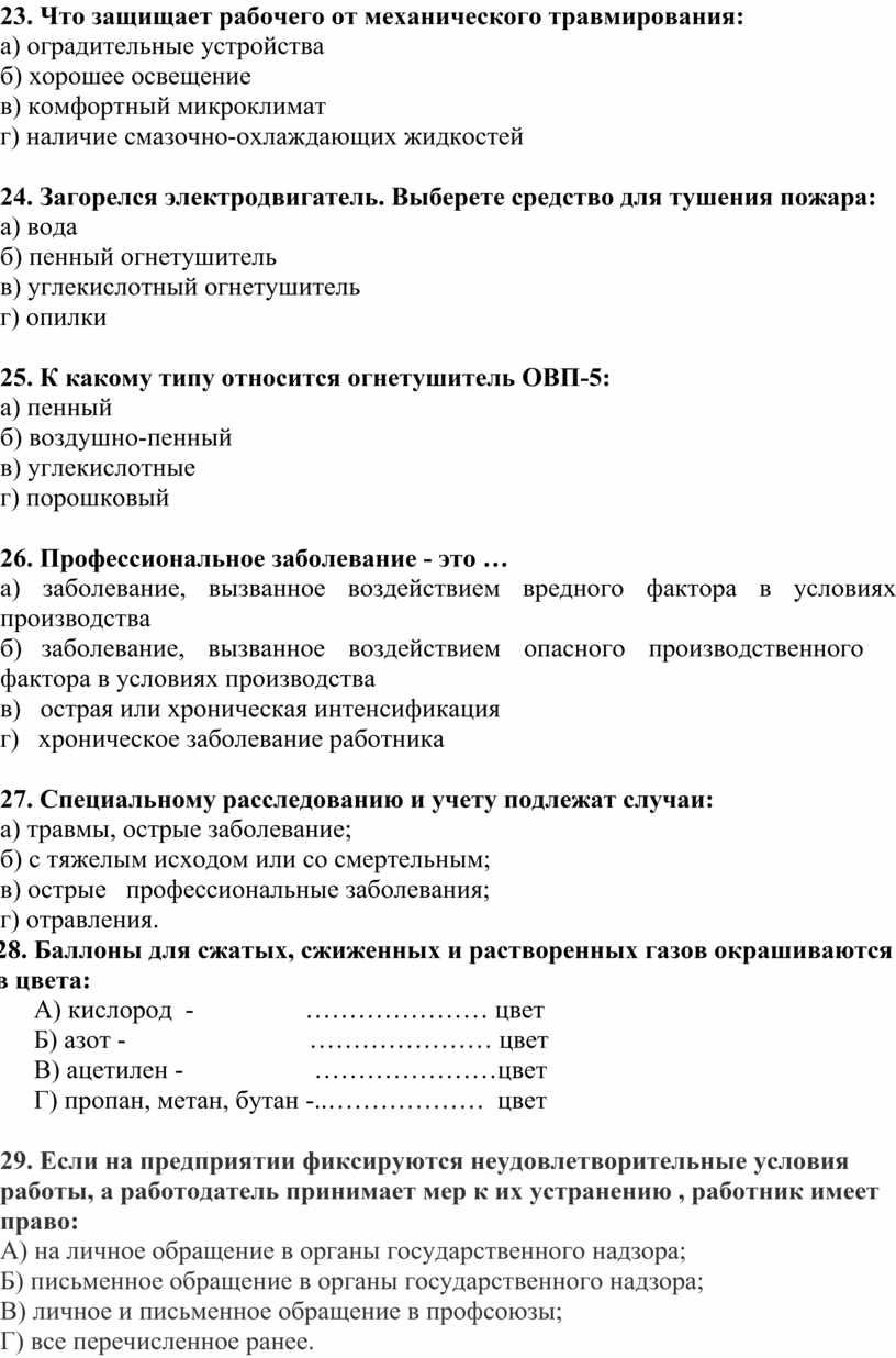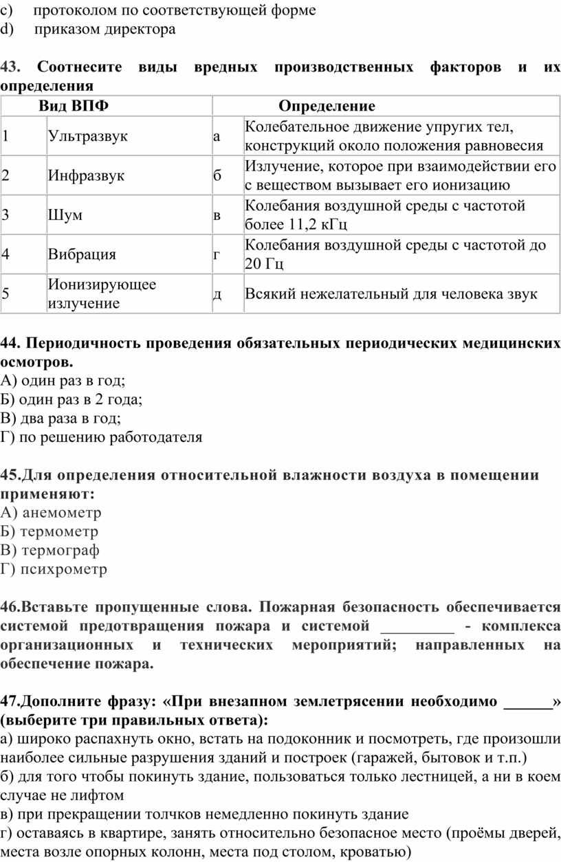 Тестовые задания для проведения комплексного дифференцированного зачета по дисциплинам Охрана труда и Безопасность жизнедеятельности