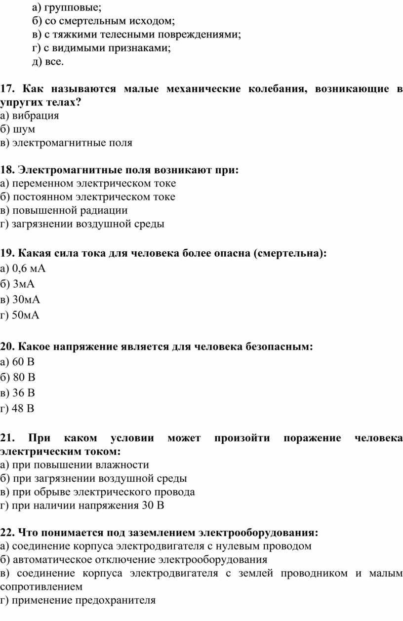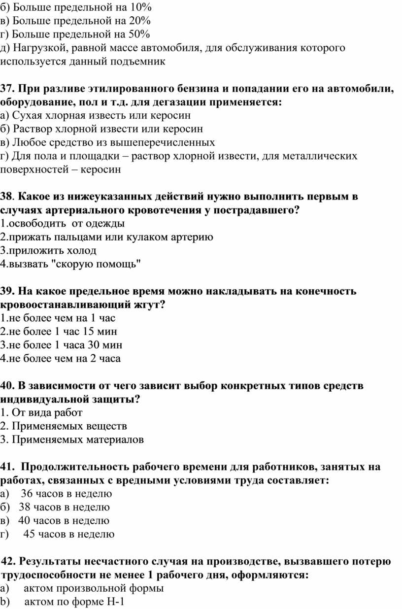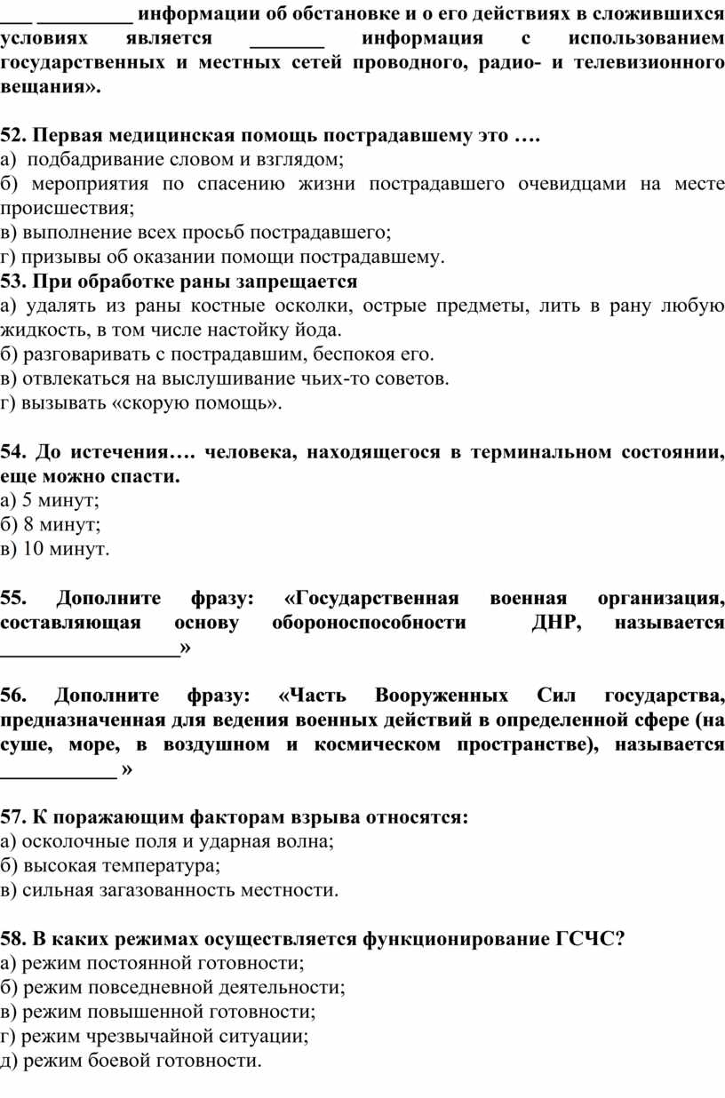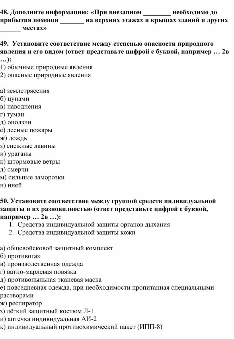 Тестовые задания для проведения комплексного дифференцированного зачета по дисциплинам Охрана труда и Безопасность жизнедеятельности