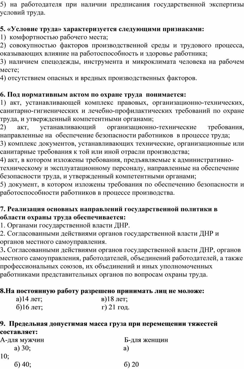 5) документ, в котором изложены требования по обеспечению безопасности и работоспособности работников в процессе производства.