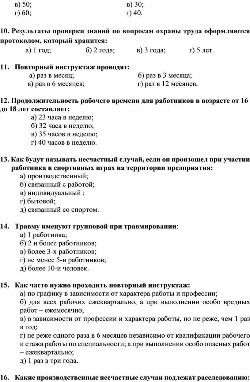 10. Результаты проверки знаний по вопросам охраны труда оформляются протоколом, который хранится: