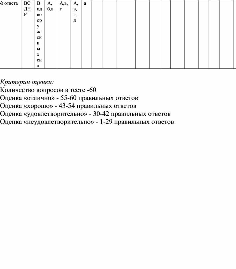 Оценка «удовлетворительно» - 30-42 правильных ответов